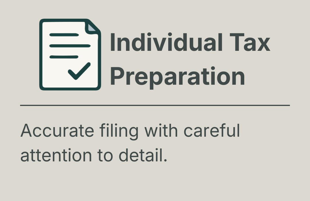 Whether you have a quick question or need full tax preparation, we’re here to help. Reach out by phone or message and we’ll take it from there.